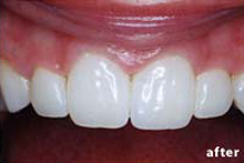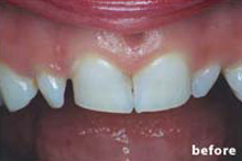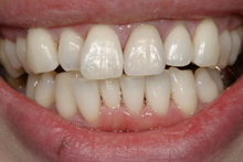 以前より前歯のがたつきがかなり気になり橋本歯科医院を来院しました。今更矯正装置をつけて矯正するのも、ちょっとって感じで、エンジェルクラウンによる歯並び矯正を依頼しました。ほんの4~5回の来院でこの様に綺麗にしていただき大変感謝しております。先生本当にありがとうございました!