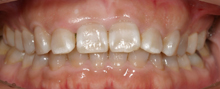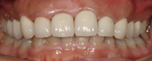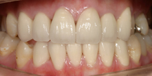 以前より前歯のがたつきがかなり気になり橋本歯科医院を来院しました。今更矯正装置をつけて矯正するのも、ちょっとって感じで、ウォルセラムによる歯並び矯正を依頼しました。ほんの4~5回の来院でこの様に綺麗にしていただき大変感謝しております。先生本当にありがとうございました!