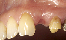 以前ブリッジをしていましたが両隣の歯がグラグラしたため抜歯し今はウェルデンツ の部分入れ歯をしています。 ちなみに歯周病のため欠損したわけではありません。 ただ、生活には支障ありませんが食事も食べにくく、言葉もつまり話し…[→詳細]
